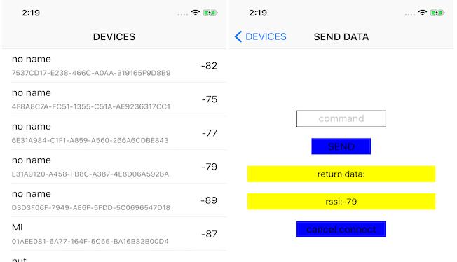 peripheral.RSSI. Instead, you should get callback after using[peripheral readRSSI], so we can't show RSSI when discover a lot of deivces. So I created a category CBPeripheral+RSSI, then added a property namedrssiby using Runtime.