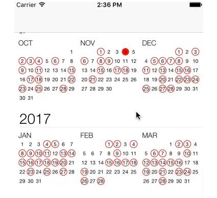A Swift and Objective-C compatible iOS calendar UI library that can be used to display a calendar of events within your app. Note that this calendar is not designed as a picker but rather to display an existing set of events.