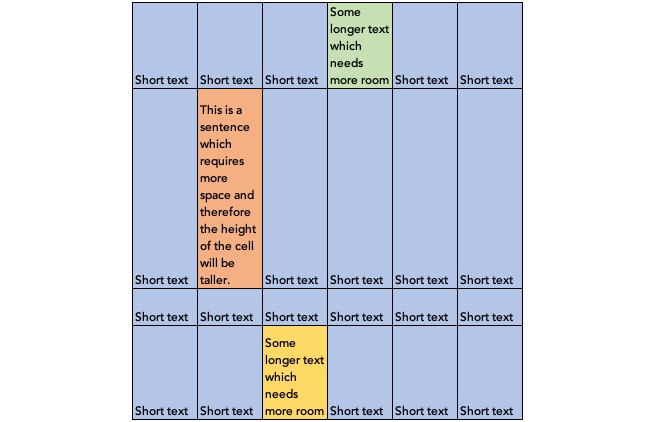 In order to help you determine the height of your content, FlexibleRowHeightGridLayout provides a couple of useful methods such as textHeight(_ text: String, font: UIFont) to help you calculate the height required to display a String rendered using the specified font. If your cell were to contain a label pinned to each of the edges of the cell’s content view then the height of the cell’s content could easily be calculated as follows:
