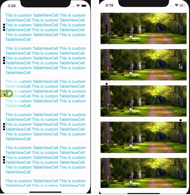 - Menu on top of UItableViewCell which can come out from left to right or vice versa.